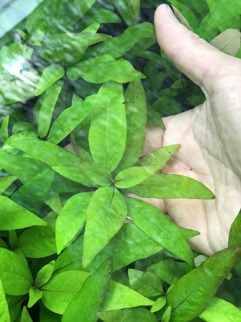本日のおすすめ水草のご紹介です。 ミニテンプル プラント 水中葉 強いひかりの下で赤く色づく細葉のルドウォジアです。 中景~後景向きです。 よろしくお願いいたします。
