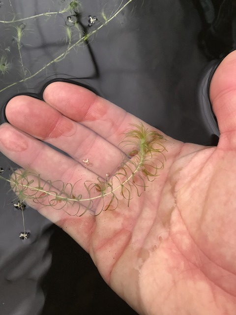 本日のおすすめ水草のご紹介です。 ラガロシフォン マダガスカリエンシス 水中葉 透きとおった緑色の葉がカールしていて、密集させるととても美しい水景になります。 中景~後景向きです。 よろしくお願いします。
