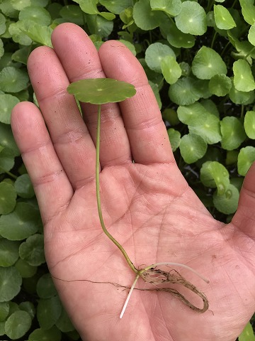 本日のおすすめ水草のご紹介です。 ウォーターマッシュルーム 水上 丸い葉が可愛らしい水草です。 地下茎で広がって育ちます。 中景向きです。 よろしくお願い致します。