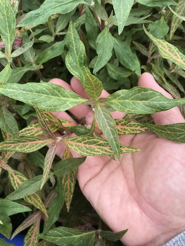 葉脈にそって斑が入るレインキー。