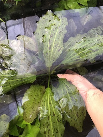 本日のおすすめ水草のご紹介です。 エキノドルス グリーンフレーム水中 角pot (ソイル) 斑が美しいエキノドルス です。 ソイルにしっかり根が張っているので、水槽に馴染み易い商品です。 後景向きです。 よろしくお願いしたします