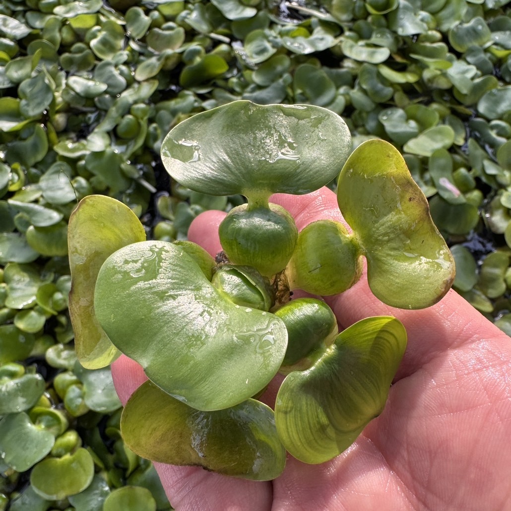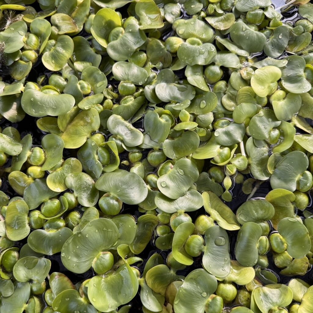 小さな浮遊水草の一種でその特徴は、円形から楕円形の葉が水面上に浮かぶことです。葉は比較的小さく、丸みを帯びた形状をしています。葉の表面は滑らかで光沢があり、緑色から赤みを帯びた色合いをしています。