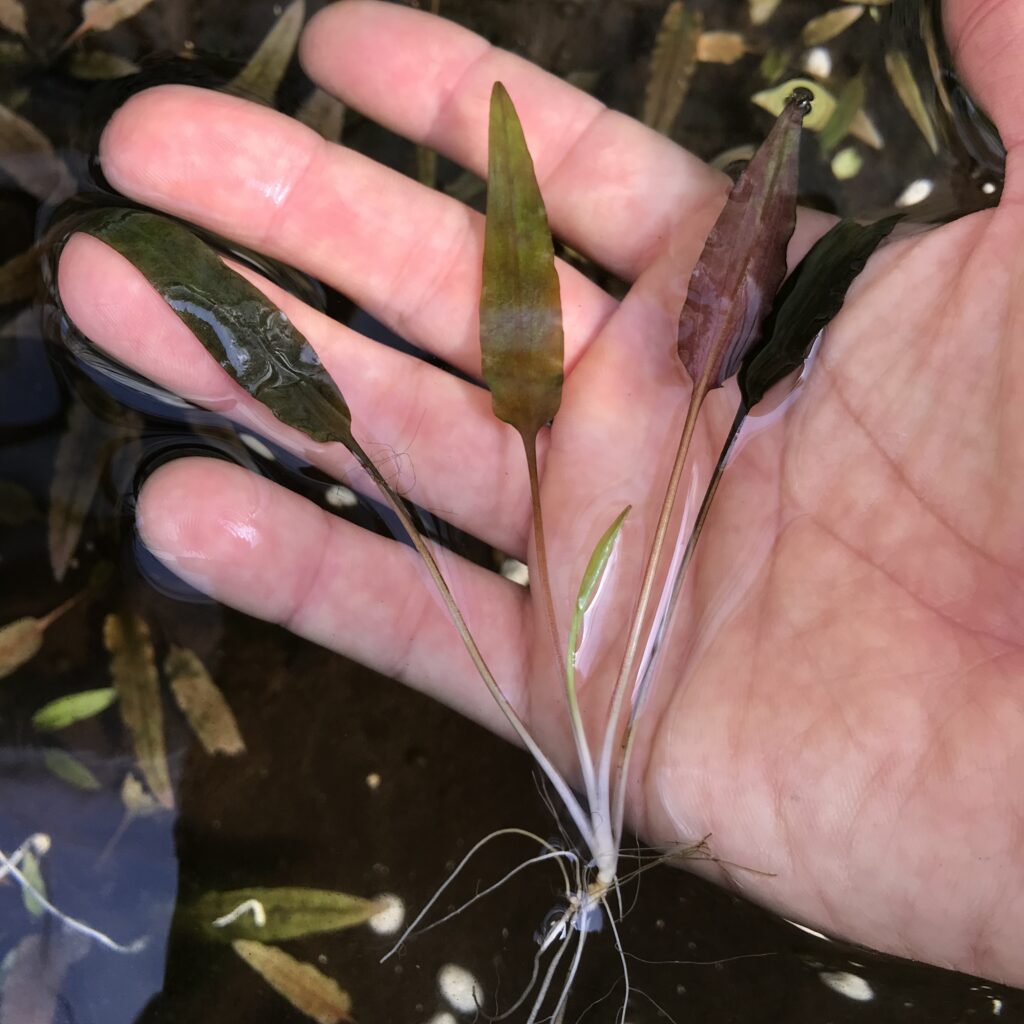葉はやや厚みがあり、光の加減で色合いが変化するため、水槽内に自然なアクセントを加えます。