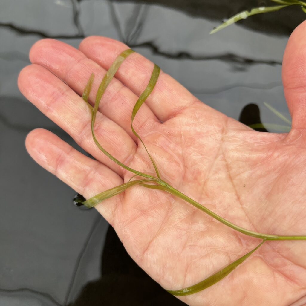 細長いリボン状の葉を持つ沈水性の海草で、やわらかくしなやかな質感が特徴です。