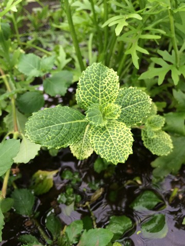 本日のおすすめ水草のご紹介です。 ホワイト ウィステリア 水上 葉脈に沿って白い斑が入るタイプのウィステリアです。 よろしくお願いします。