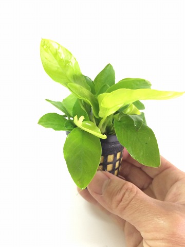 本日のおすすめ水草のご紹介です。 アヌビアス ナナ ゴールデン 水上 Lpot ライトイエローの葉が美しいアヌビアスです。 ワンポイントにいかがでしょうか。 溶岩石や流木に活着向きです。 よろしくお願いします。