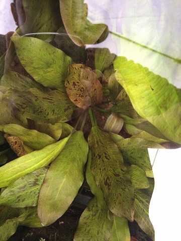本日のおすすめ水草のご紹介です。 エキノドルス オゼロット レッド 水中葉 赤黒い班が美しく入るエキノドルスです。 オゼロット グリーンと違い、新葉が赤く色づきます。 後景向きです。 よろしくお願いします。